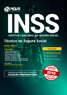Apostila INSS 2018 – Técnico do Seguro Social, da Nova Concursos, é um material preparatório atualizado e de acordo com o último edital, organizado por professores especializados em concursos públicos.
